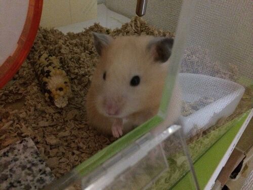 今日も照明が直らなかったので暗いです。 今日のみそあんは5時頃就寝、18時に起きて来たのでお掃除しました。 今日の昼間にコーンを食べたり、ホイールの前を横切って巣に戻るところを見たので、ちょっとレアなものをみました。 「ごはんかなー?」 「ごはん…