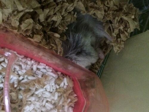 今日のみそあんは21時頃起きていたのでお掃除をしました。 起きていたみそあん、何をしてるんだろうと思ったら、トイレでご飯を食べてました。 もしかして…またトイレに巣を作ってしまうのか…?!とちょっと不安です。 巣にうず高く積まれている巣材で他の場…