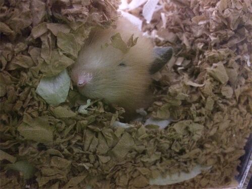 夫撮影。 鼻だけ出しているときはすんすんして匂いを嗅いでることがあります。 床材を乗せて眠るみそあん。 このあと天国に行きました。 あまりにも突然で悲しいけれど、老衰でした。 最後は夫が綺麗なみそあん色の花と女の子らしい、白い大きな花を入れて、…