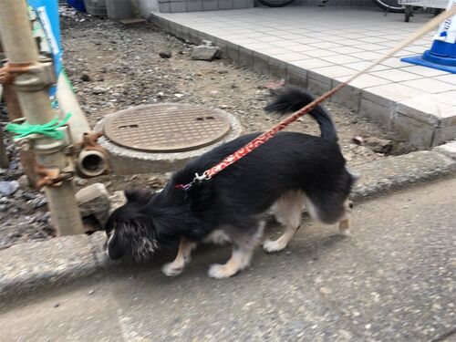 今日は保育園の日でした。 ちょっと肌寒い中での登園。 お散歩しながら行きました。 朝散歩はなかなかないので、ノリノリで散歩です。 保育園に近付くと、園でのお散歩コースということもあり、ちょっと足が早まります。 しかし、なぜか手前の工事中のところ…
