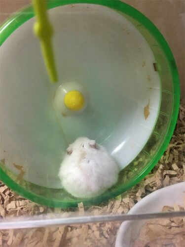 今日のつぶあんは掃除前からホイールの上でぼーっとしてました。 しろあんがホイールの上にいるときは、何故か背中を向いているので哀愁漂います。 呼ぶとこちらを振り返って、しーんとしています。 大抵、ホイールの中でうんちをしているので、そのまま回す…