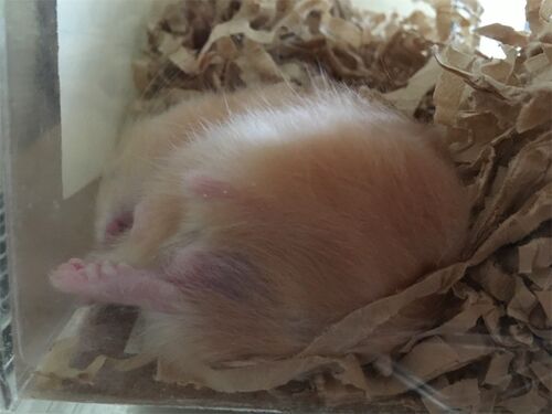 写真のみです。 今日は容器から安全に出して、ベッドの上を散歩させました。 帰りも容器に入れて、しっかり手でフタ。 容器ごとゲージに入れました。 元気で良かったです。 今日のあんずあんショット サササッ