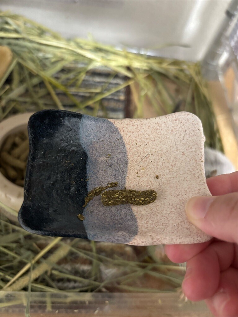 砂浴びをさせたら喜んでいた。くろのうんちや草を食べようとしてる。